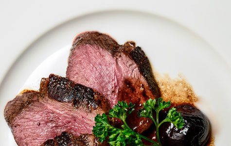 Regionale kalfsreepjes, bereid op de Zürichse wijze. Deze populaire specialiteit wordt geserveerd met een subtiel gekruide cantharellensaus en een huisgemaakte aardappelrösti.