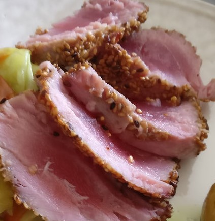 Tonijn met sesamcoating en Aziatische citrus-honingsaus met nori-zeewier