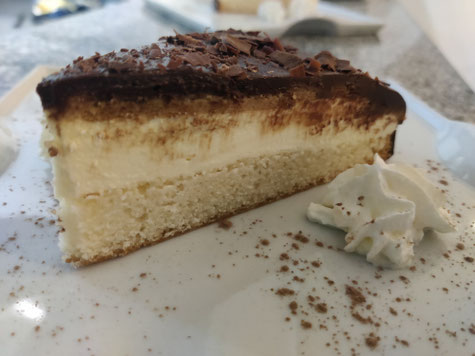 Pastel de ciruelas crujientes casero de Annett con crema.